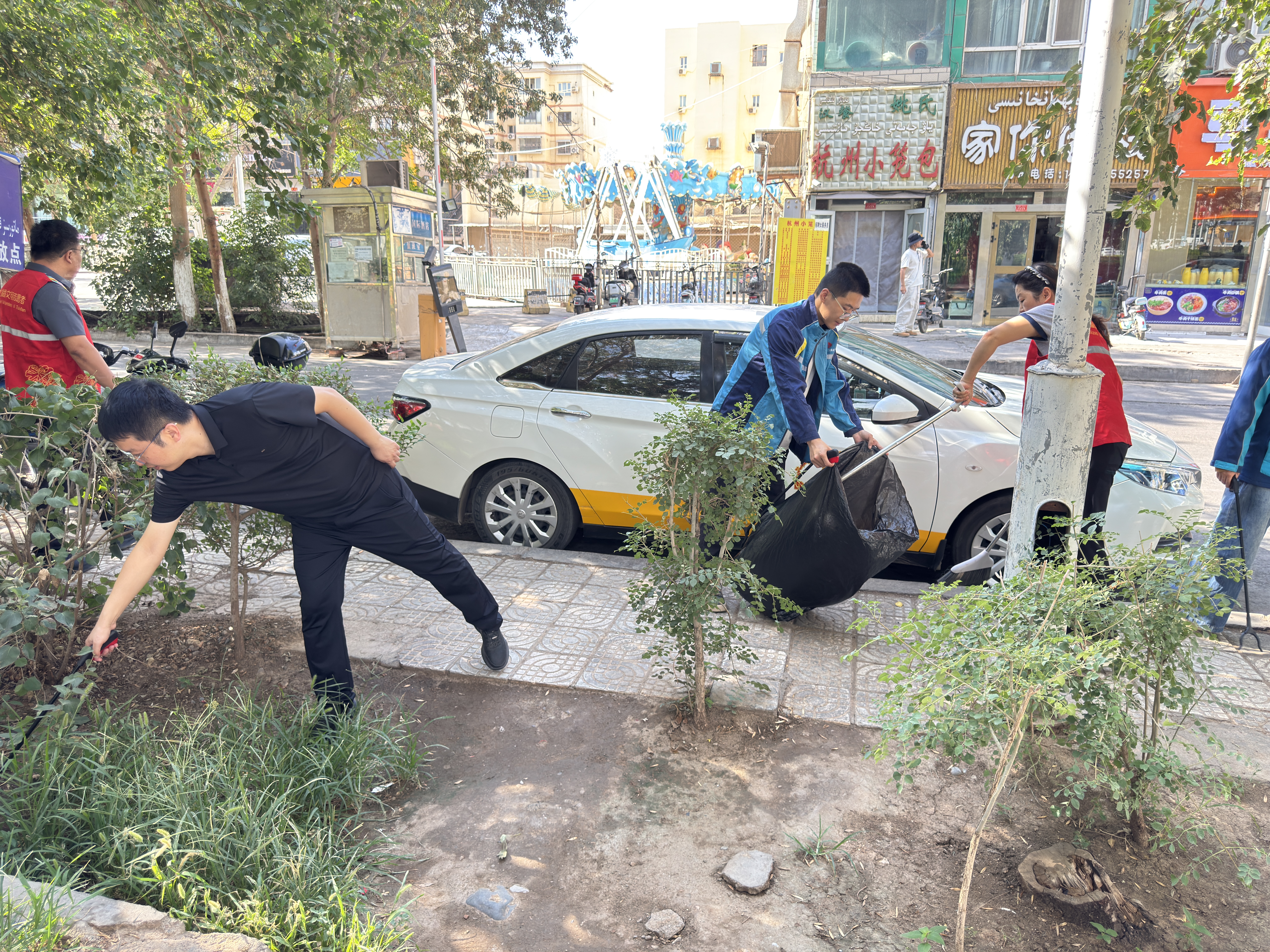 活動(dòng)中,全體職工分工協(xié)作、默契配合,手持掃帚、垃圾鉗等清潔工具,對(duì)項(xiàng)目周邊綠化帶及主要通行道路展開了全面清掃。一部分人細(xì)致清掃地面落葉與雜物,一部分人認(rèn)真擦拭宣傳欄、扶手等公共設(shè)施,還有專人負(fù)責(zé)收集和清運(yùn)積存垃圾,并對(duì)平日易忽略的衛(wèi)生死角進(jìn)行徹底清理。現(xiàn)場(chǎng)氣氛熱烈,忙碌中不失條理,高溫下更顯擔(dān)當(dāng)。