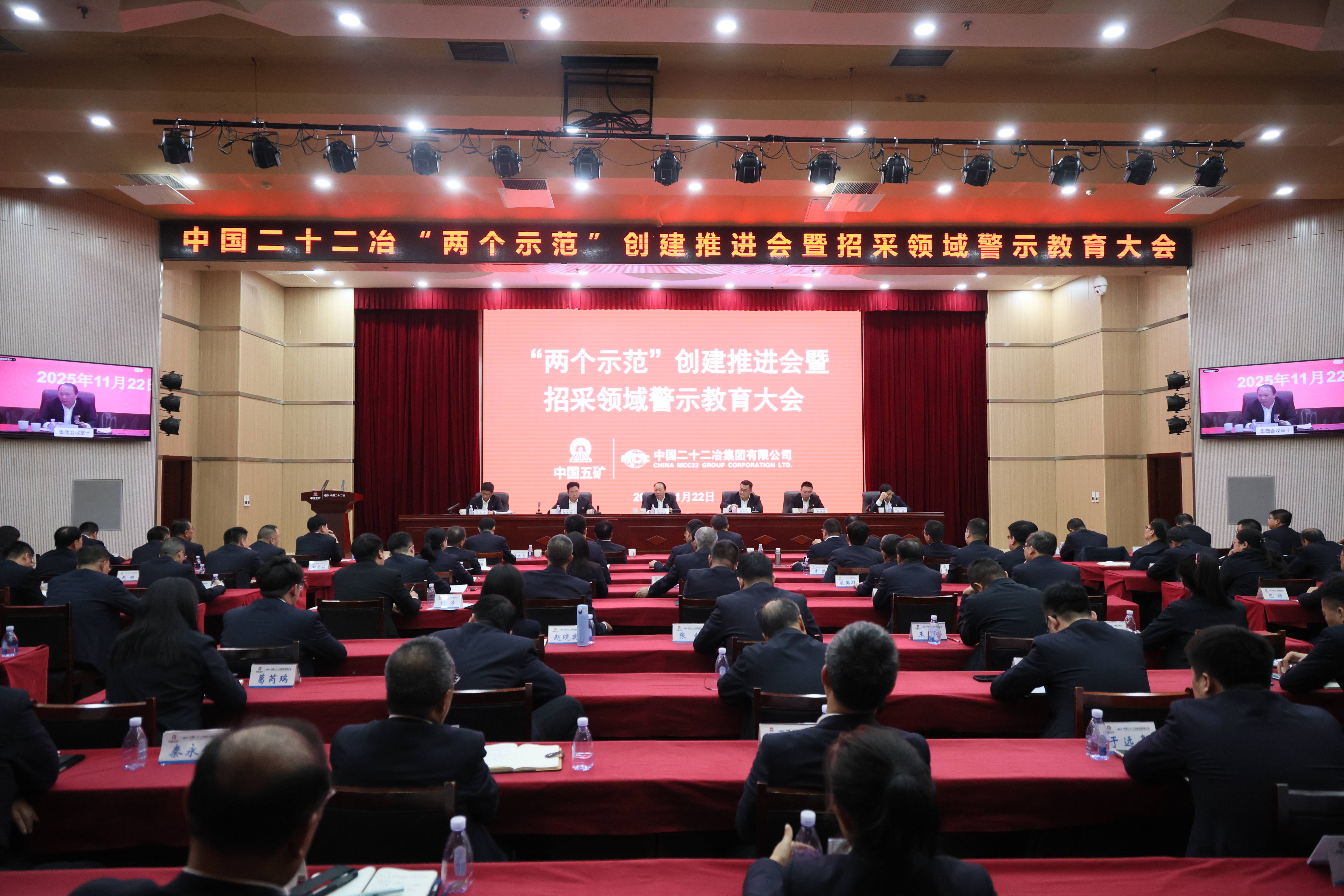 中國二十二冶召開清廉項目示范工程暨“兩個示范”創建推進會、招采領域警示教育大會